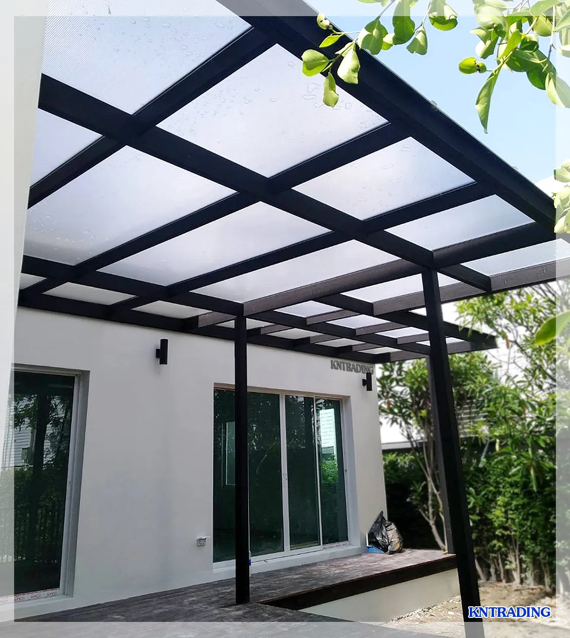 พื้นที่ใต้กันสาดไม่มืดทึล ดูโปร่งโล่งสบายและไม่อึดอัด พร้อมป้องกันฝนและ UV จากแสงแดด